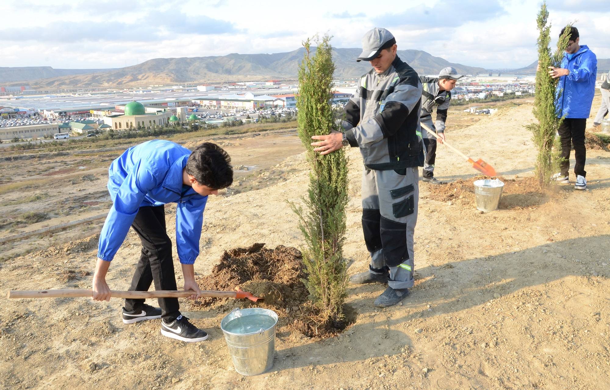 Bakı Şəhər İcra Hakimiyyəti və “Regional İnkişaf” İctimai Birliyinin (RİİB) birgə təşkilatçılığı ilə növbəti ağacəkmə aksiyası Qaradağ rayonu ərazisində - əsas magistral yolun kənarında keçirilib.