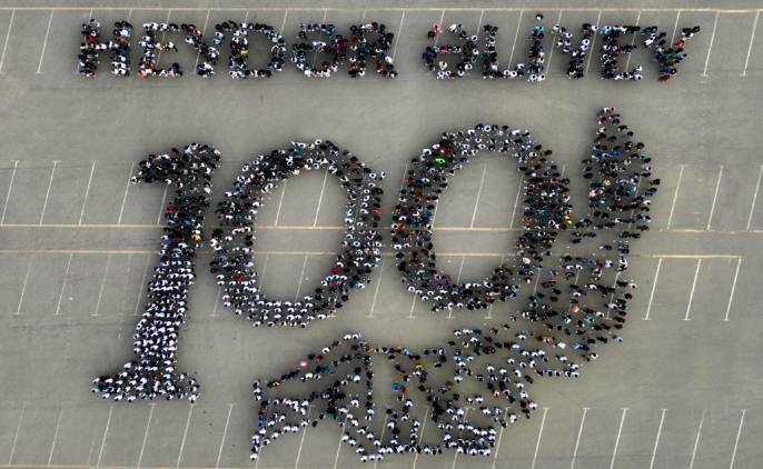 “Regional İnkişaf” İctimai Birliyinin (RİİB) dəstəyi ilə keçirilən fləşmobda 2000-dən çox könüllü gənc iştirak edib. Fləşmobda ulu öndər Heydər Əliyevin adı və 100 illik yubiley simvolundan ibarət kompozisiya yaradılıb.