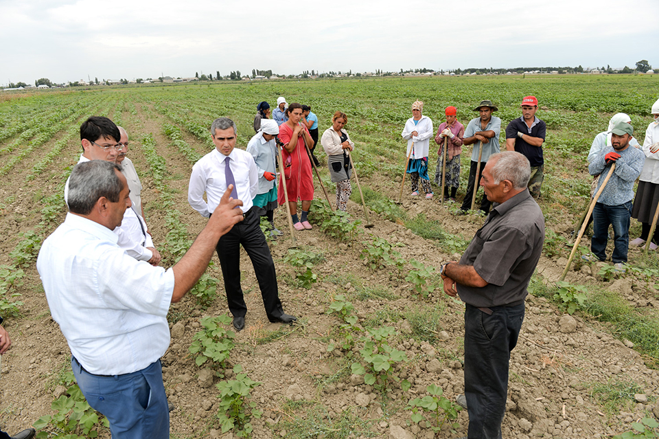 Daha sonra Heydər Əliyev Fondunun nümayəndələri Yevlax rayonunun kəndlərində olublar, sakinlərlə görüşlər keçiriblər. Pambıq sahəsi ilə tanışlıq zamanı bildirilib ki, “Regional İnkişaf” İctimai Birliyinə pambıqçılığın inkişafı, suvarma sisteminin yaradılması ilə bağlı bır çox təkilflər daxil olub və onlar araşdırılır.