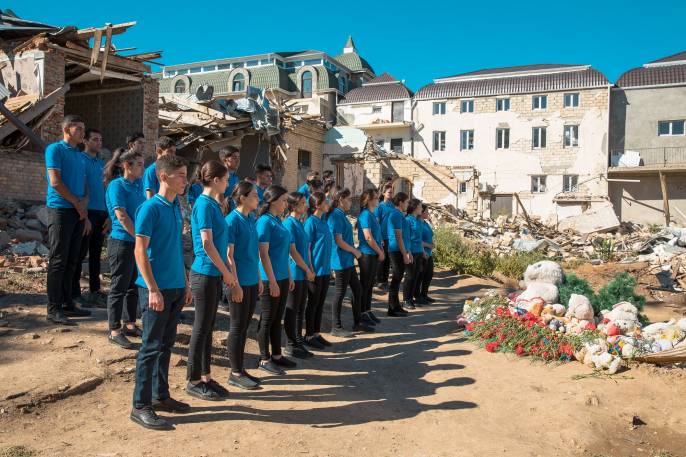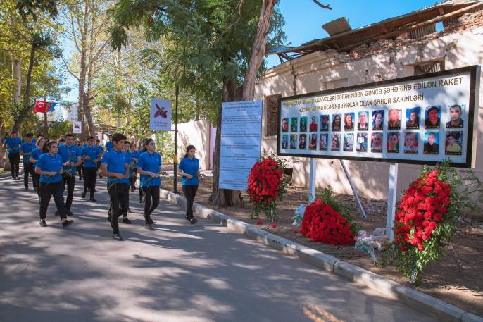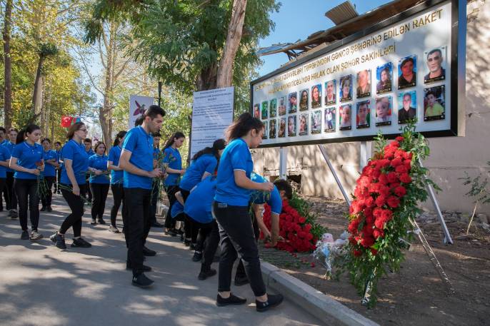 RİİB könüllüləri Gəncədə Ermənistanın raket hücumları nəticəsində həlak olan dinc sakinlərin xatirəsini anıblar