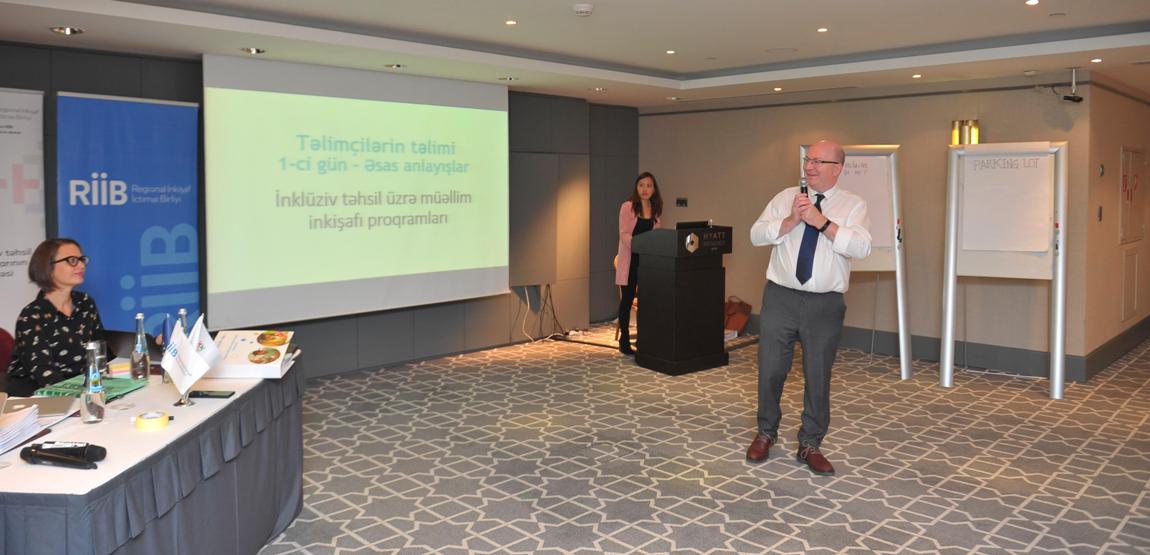 Heydər Əliyev Fondunun “Regional İnkişaf” İctimai Birliyinin (RİİB) Avropa İttifaqının dəstəyi ilə həyata keçirdiyi “Müəllimlərin inklüziv təhsil sahəsində bacarıqlarının artırılması” layihəsi çərçivəsində Bakı şəhərində inklüziv təhsil üzrə təlim başlayıb.