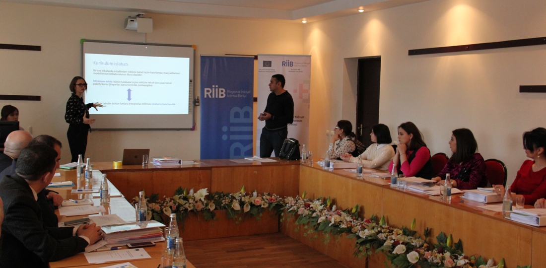 Avropa İttifaqının dəstəyi ilə Heydər Əliyev Fondunun “Regional İnkişaf” İctimai Birliyi (RİİB) tərəfindən həyata keçirilən “Müəllimlərin inklüziv təhsil sahəsində bacarıqlarının artırılması” layihəsi çərçivəsində fevralın 14-də Azərbaycan Dövlət Pedaqoji Universitetində inklüziv təhsilin müəllim hazırlığı kurrikulumuna inteqrasiyası ilə bağlı yaradılmış işçi qrupunun növbəti iclası keçirilib.