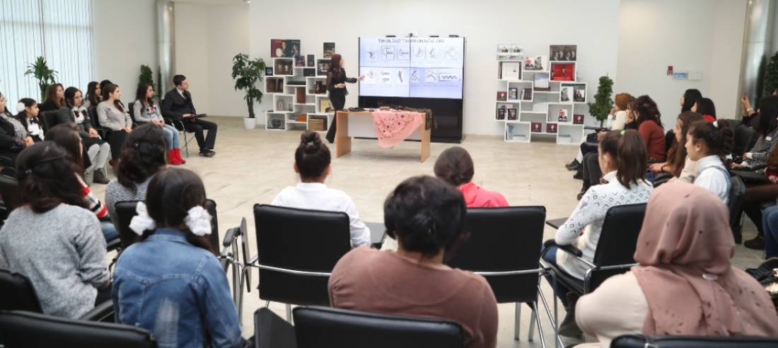 Mühazirəni Azərbaycan Dövlət Mədəniyyət və İncəsənət Universitetinin (ADMİU) “Təsviri sənət tarixi və nəzəriyyəsi” kafedrasının müəllimi Türkan Abbasova aparıb. İştirakçılara Azərbaycan bədii tikmə sənətinin meydana gəlmə tarixi və inkişaf mərhələləri, Azərbaycan geyim mədəniyyətində rolu haqda məlumat verilib. Nəzəri biliklər qazanmaqla yanaşı, mühazirə iştirakçılarına bədii tikmə nümunələri ilə əyani tanış olmaq imkanı da yaradılıb.